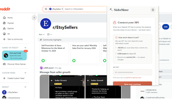 NicheMiner는 Indie Hackers, Developers 및 Solopreneurs가 Reddit 토론을 분석하여 수익성 있는 Micro-SaaS 기회를 식별하는 데 도움을 주기 위해 설계된 Chrome 확장 프로그램입니다. AI 기술을 활용하여 다양한 Subreddits를 스캔하여 사용자가 가지고 있는 특정 불만을 파악하고 심각도에 따라 분류하며 실행 가능한 통찰력을 제공합니다. 이 도구는 시장 조사에서의 추측을 없애고 사용자가 솔루션이 필요한 실제 문제에 집중할 수 있도록 합니다.